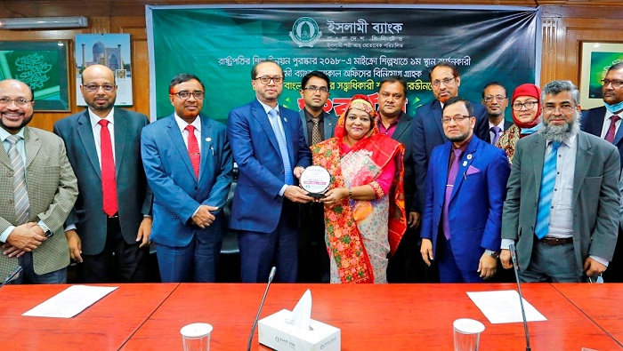 ইসলামী ব্যাংক বাংলাদেশ লিমিটেডের লোকাল অফিস কর্পোরেট শাখার বিনিয়োগ গ্রাহক নারী উদ্যোক্তা শাহিদা পারভীন ‘রাষ্ট্রপতির শিল্প উন্নয়ন পুরস্কার-২০১৮’ এ মাইক্রো শিল্পখাতে ১ম স্থান অর্জন করায় তাকে সংবর্ধনা দেওয়া হয়েছে।