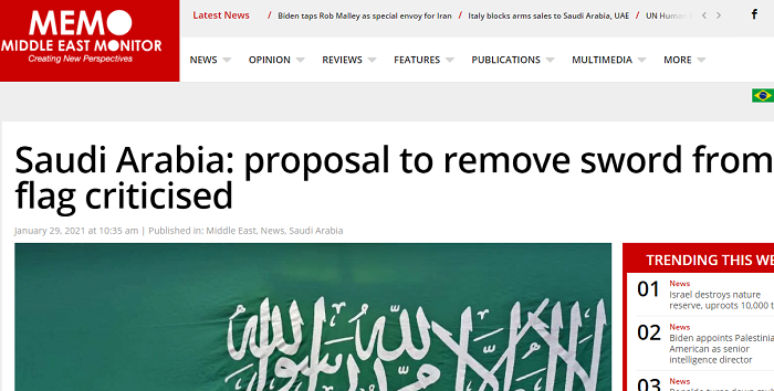 জাতীয় পতাকা থেকে তলোয়ারের ছবি সরিয়ে ফেলার একটি প্রস্তাবে সৌদি আরবে তোলপাড় শুরু হয়েছে। সৌদি লেখক ফাহদ আমের আল-আহমাদি টুইটারে এমন প্রস্তাব করার পর অনেকে এর কঠোর সমালোচনা করেছেন।