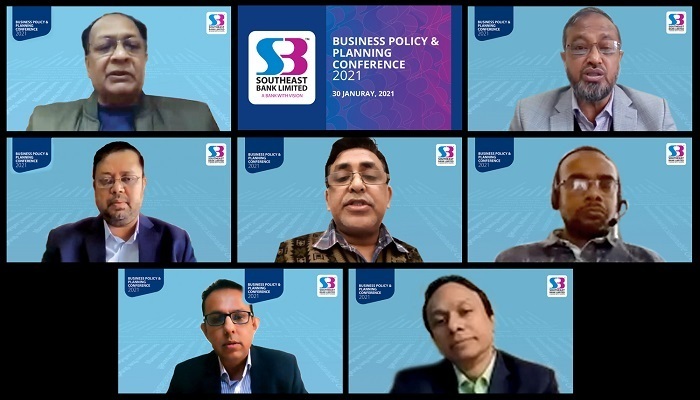 সাউথইস্ট ব্যাংকের ব্যবসায়িক অবস্থান মূল্যায়ন সম্পর্কিত ‘বিজনেস পলিসি এবং প্ল্যানিং কনফারেন্স-২০২১’ সম্প্রতি ডিজিটাল প্ল্যাটফর্মে অনুষ্ঠিত হয়েছে।