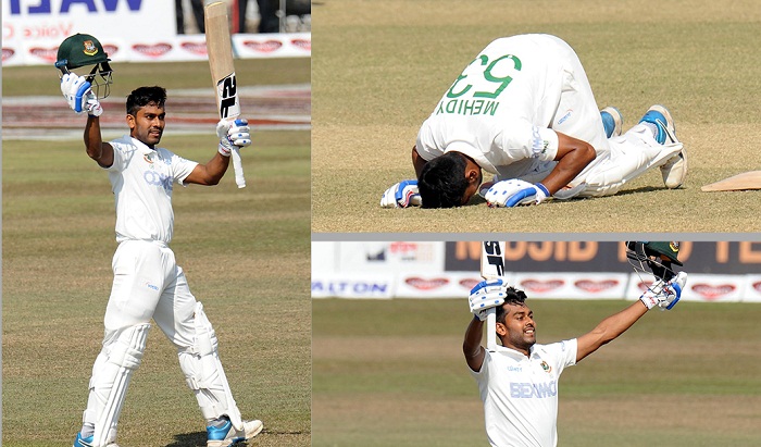 তাইজুল ফিরলেও ক্যারিয়ারে প্রথমবারের মতো সেঞ্চুরির দেখা পেলেন মেহেদি হাসান মিরাজ। ওয়েস্ট ইন্ডিজের বিপক্ষে প্রথম টেস্টে ওয়ারিকানের বল লেগ সাইডে ঠেলে দিয়ে দুই রান নিয়ে সেঞ্চুরি পূর্ণ করেন এই অলরাউন্ডার। সেঞ্চুরি করতে ১৬০ খেলার সঙ্গে ১৩টি চার মেরেছেন ডানহাতি এই ব্যাটসম্যান। সেঞ্চুরির পর অবশ্য ইনিংস বড় করতে পারেননি মিরাজ। মিড অনে ওপর দিয়ে ছক্কা মারতে গিয়ে ক্যাচ আউট হয়েছেন তিনি। তাঁর বিদায়ের সঙ্গে সঙ্গে অলআউট হয় বাংলাদেশ। মিরাজ আউট হন ১০৩ রানে আর বাংলাদেশ প্রথম ইনিংসে থামে ৪৩০ রানে।