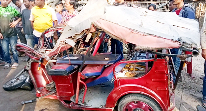 দিনাজপুরে যাত্রীবাহী অটোরিকশা ও মালবাহী ট্রাকের মুখোমুখি সংঘর্ষের ঘটনা ঘটেছে। এতে অটোরিকশা যাত্রী মা ও মেয়ে নিহত হয়েছেন। গুরুতর আহত হয়েছেন অটোরিকশার চালক।