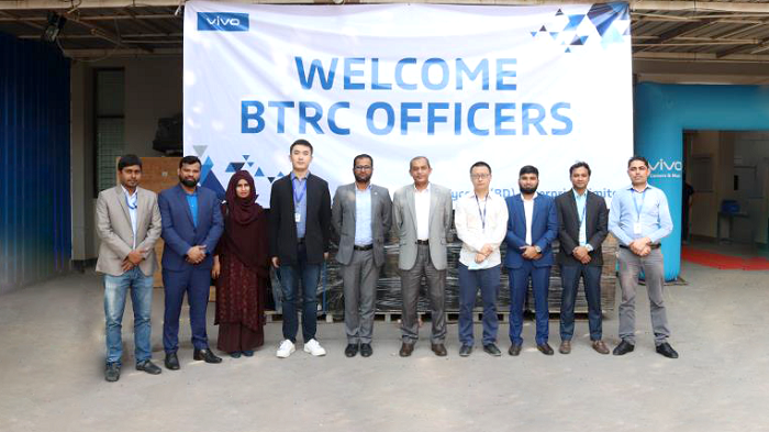 নারায়ণগঞ্জে অবস্থিত বহুজাতিক স্মার্টফোন নির্মাতা প্রতিষ্ঠান ভিভোর মোবাইল ফোন উৎপাদন কারখানা পরিদর্শন করেছে টেলিযোগাযোগ নিয়ন্ত্রক প্রতিষ্ঠান বিটিআরসি’র (বাংলাদেশ টেলিযোগাযোগ নিয়ন্ত্রণ কমিশন) দায়িত্বরত কর্মকর্তারা ।