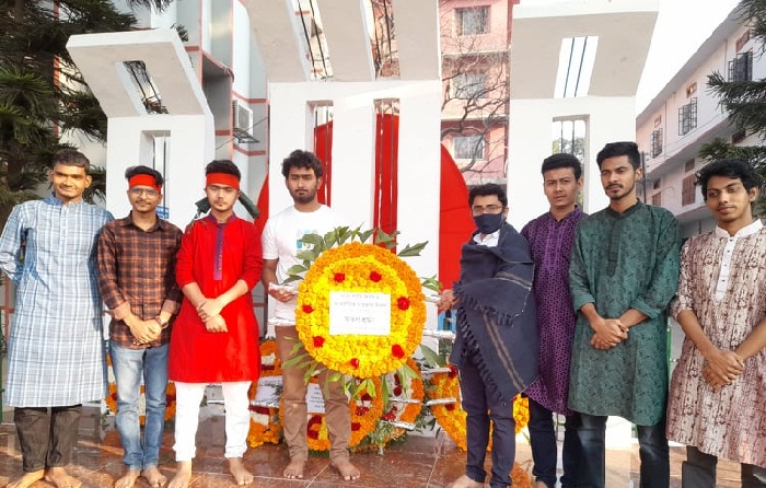 আজ (২১ ফেব্রুয়ারি) সকালে রাজধানীর সরকারি তিতুমীর কলেজের কেন্দ্রীয় শহীদ মিনারে পুষ্পস্তবক অর্পন করেন কলেজ সাংবাদিক সমিতির সদস্যরা। এ সময় অমর একুশের কালজয়ী গান ‘আমার ভাইয়ের রক্তে রাঙানো একুশে ফেব্রুয়ারি’ বাজানো হয়। ফুল দেওয়া শেষে তারা কিছু সময় নীরবে দাঁড়িয়ে থেকে ভাষা শহীদদের স্মৃতির প্রতি গভীর শ্রদ্ধা নিবেদন করেন।