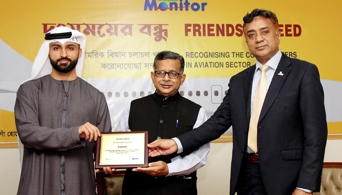 করোনার বৈশ্বিক মহামারিকালে বাংলাদেশ ও বাংলাদেশের জনগণের প্রতি প্রদর্শিত অব্যাহত অঙ্গিকারের জন্য ‘ফ্রেন্ড ইন নিড’ বা ‘দুঃসময়ের বন্ধু’ স্বীকৃতি লাভ করেছে এমিরেটস এয়ারলাইন। বুধবার (২৪ ফেব্রুয়ারি) এভিয়েশন ও ভ্রমণ বিষয়ক প্রকাশনা ‘দি বাংলাদেশ মনিটর’ আয়োজিত এক অনুষ্ঠানে এই সম্মাননা প্রদান করা হয়।