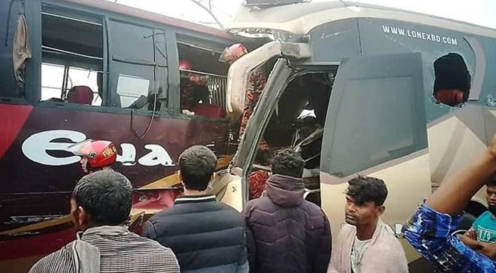 দুই বাসের মুখোমুখি সংঘর্ষে নিহত ৭