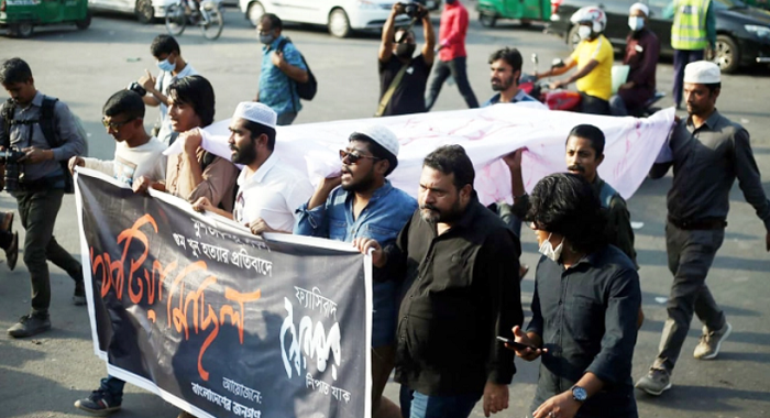ডিজিটাল নিরাপত্তা আইনে করা মামলায় কারাগারে আটক থাকা অবস্থায় লেখক মুশতাক আহমেদের মৃত্যুর প্রতিবাদে এবার খাটিয়া মিছিল করেছে মৌলিক বাংলা নামে একটি সংগঠন।