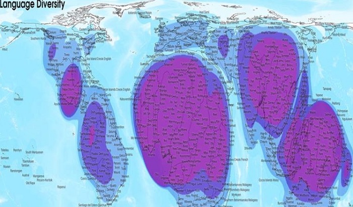 পৃথিবীতে সবচেয়ে বেশি ভাষাবৈচিত্র্য দেখা যায় আফ্রিকা ও এশিয়ায়, যেখানে ২০০০ এরও বেশি ভাষায় কথা বলে মানুষ। মানচিত্রের আরেক পাশ ইউরোপে ২৫০টি ভাষা ও উপভাষায় কথা বলে মানুষ।