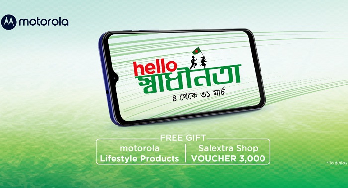 স্মার্টফোন ব্র্যান্ড মটোরোলা স্বাধীনতার মাসে নতুন কনজ্যুমার ক্যাম্পেইন ‘হ্যালো স্বাধীনতা’ চালু করেছে। স্বাধীনতা দিবস উপলক্ষে পুরো মার্চ মাসে এই ক্যাম্পেইনের আওতায় বিভিন্ন অফার উপভোগ করতে পারবেন স্মার্টফোনপ্রেমীরা। ক্রেতারা অফলাইন শপ বা অনলাইন চ্যানেল থেকে মটোরোলার নির্দিষ্ট মডেলের স্মার্টফোন কিনলে হ্যালো স্বাধীনতা ক্যাম্পেইনের আওতায় বিভিন্ন অফার উপভোগ করতে পারবেন।
