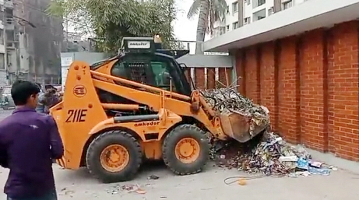 রাস্তায় ফেলা বর্জ্য সরকারি আবাসনের ফটকে নিয়ে রাখলেন মেয়র আতিক