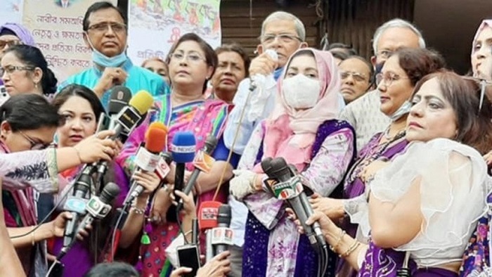 মির্জা ফখরুল বলেন, আজ শুধু নারীরা নয়, সমগ্র বাংলাদেশের মানুষ নির্যাতিত। তারা বন্দি। তারা তাদের অধিকার থেকে বঞ্চিত হয়েছে। স্বাধীনতার সুবর্ণ জয়ন্তী পালিত হচ্ছে, সেখানে স্বাধীনতার সুবর্ণ জয়ন্তীতে আমাদের যারা অধিকারের জন্য আন্দোলন করছে—আমাদের ছাত্রনেতা, লেখক, সাংবাদিকদের ওপর নির্মম নির্যাতন চলছে।