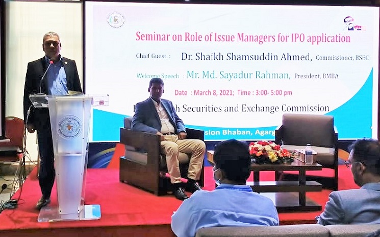 আজ সোমবার (৮ মার্চ) রাজধানীর আগারগাঁওয়ে অবস্থিত সিকিউরিটিজ কমিশন ভবনে আয়োজিত ‘রোল অব ইস্যু ম্যানেজার্স ফর আইপিও এপ্লিকেশন’ শিরোনামের সেমিনারে তিনি এসব কথা বলেন।