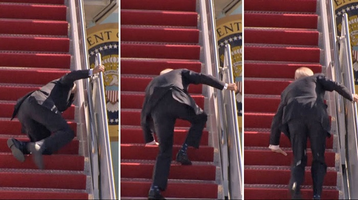 বাইডেন সিঁড়িতে এভাবে পড়ে যাওয়ার কারণ হিসেবে প্রবল বাতাসকে দায়ী করেছেন মার্কিন কর্মকর্তারা।