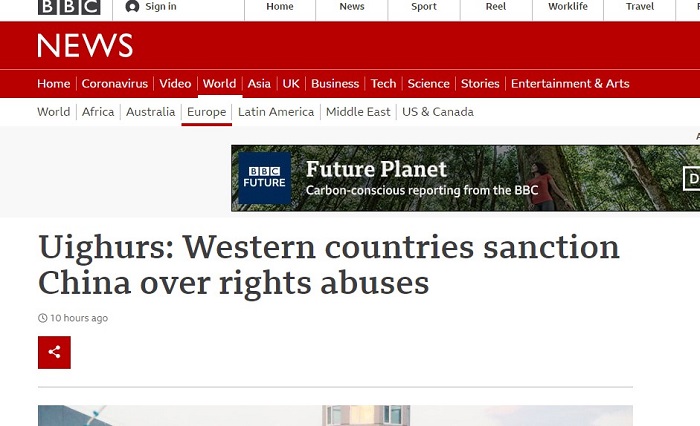 উইঘুর মুসলিমসহ সংখ্যালঘুদের চীন সরকার নির্যাতন করছে বলে বরাবরই অভিযোগ করে আসছে পশ্চিমা বিশ্ব। যদিও চীন এসব অভিযোগ অস্বীকার করে আসছে। সবশেষ চীনের জিনজিয়াং প্রদেশে উইঘুর মুসলিমসহ সংখ্যালঘুদের ওপর নির্যাতনের ঘটনায় দেশটির কর্তাব্যক্তিদের ওপর নিষেধাজ্ঞা জারি করেছে পশ্চিমা কয়েকটি দেশ।