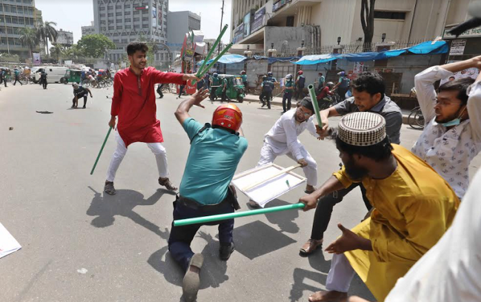 এদিকে ঢাকা মেট্রোপলিটন পুলিশের (ডিএমপি) মতিঝিল বিভাগের অতিরিক্ত উপ-কমিশনার (এডিসি) মিন্টু কুমার বলেন, বিক্ষোভকারীরা মিছিল নিয়ে শাপলা চত্বর এলে পুলিশ সদস্যরা বাধা দেওয়ার চেষ্টা করেন। এসময় বিক্ষোভকারীরা পুলিশের ওপর আক্রমণ শুরু করে। এতে আমাদের বেশ কয়েকজন পুলিশ সদস্য আহত হয়েছেন।