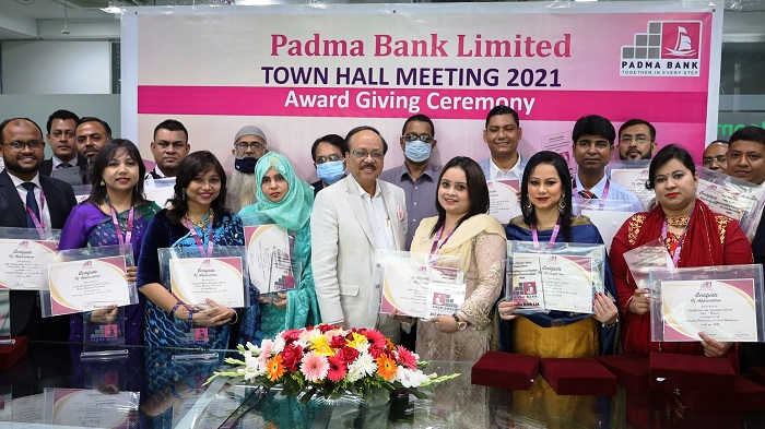 জীবনের ঝুঁকি নিয়ে করোনা মহামারিতেও ব্যাংকের অগ্রগতিতে অবদান রাখায় সেরা ২০ কর্মীকে পুরস্কৃত করেছে পদ্মা ব্যাংক লিমিটেড। ডিপোজিট সংগ্রহে দশ, রিকভারিতে আট এবং অন্যান্য বিভাগের আরো দুজনকে এই পুরস্কার দেওয়া হয়।