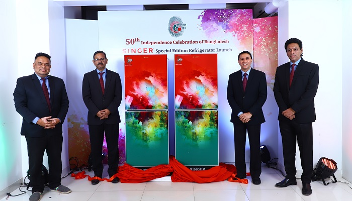 দেশের শীর্ষস্থানীয় ইলেকট্রনিকস ও হোম অ্যাপ্লায়েন্স রিটেইলার সিঙ্গার বাংলাদেশ লিমিটেড বাংলাদেশের স্বাধীনতার ৫০ বছর পূর্তি উদযাপনে রেফ্রিজারেটরের বিশেষ সংস্করণ উন্মোচন করেছে। সম্প্রতি সিঙ্গারের প্রধান কার্যালয়ে বিশেষ সংস্করণের এ রেফ্রিজারেটরগুলো আনুষ্ঠানিকভাবে উন্মোচন করেন ব্যবস্থাপনা পরিচালক ও প্রধান নির্বাহী এম এইচ এম ফাইরোজ সহ প্রতিষ্ঠানটির অন্যান্য ঊর্ধ্বতন কর্মকর্তারা।