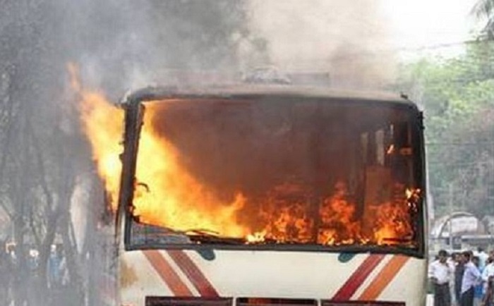বাসে আগুন জ্বলে উঠলে আতঙ্কে যাত্রীরা জানালা ভেঙে রাস্তায় লাফিয়ে পড়েন। এতে কয়েকজন সামান্য আঘাত পেলেও গুরুত্বর আহত হননি কেউ।
