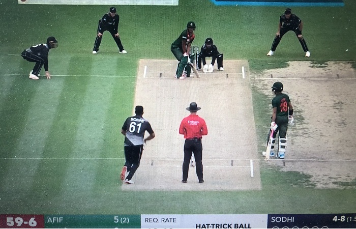 শুরুতে লিটন ফিরলেও নাঈম শেখ ব্যাট হাতে দারুণ সাবলীল ছিলেন। যদিও ব্যক্তিগত ২৭ রানে লকি ফার্গুসনের বলে এলবিডব্লিউ হয়ে ফিরতে হয়েছে তাঁকে। আর সৌম্য সরকারকে ফিরতি ক্যাচে ফিরিয়েছেন ইশ সোধি। একই ওভারে মোহাম্মদ মিঠুনকে ব্যক্তিগত ৪ রানে আউট করেছেন এই কিউই স্পিনার। এক ওভার পর ইশ সোধির দুই বলে দুই উইকেট হারায় বাংলাদেশ।