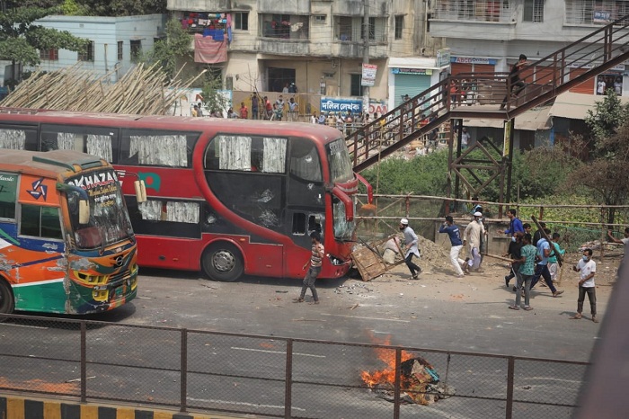 আজ (২৮ মার্চ) সকাল থেকে বিদ্যুতের খুঁটি ফেলে ও টায়ার জ্বালিয়ে মহাসড়কটি অবরোধ করে রাখে তারা।