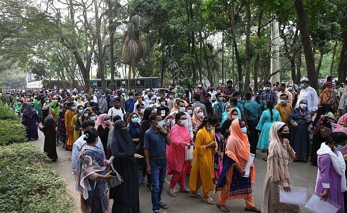 করোনাভাইরাসের সংক্রমণ বাড়ার মধ্যেই মেডিকেল ভর্তি পরীক্ষা অনুষ্ঠিত হয়েছে। শুক্রবার (২ এপ্রিল) ঢাকা বিশ্ববিদ্যালয়ের লেকচার থিয়েটার ভবন, ব্যবসায় অনুষদ ভবন, সামাজিক বিজ্ঞান অনুষদ ভবন ও উদয়ন স্কুলে পরীক্ষা অনুষ্ঠিত হয়েছে। পরীক্ষা উপলক্ষে অভিবাবকদের ব্যাপক উপস্থিতিতে প্রায় সবার মুখে মাস্ক থাকলেও সামাজিক দূরত্ব মানতে অনীহা লক্ষ করা গেছে।
