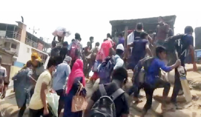 সর্বাত্মক লকডাউনের ঘোষণায় দৌলতদিয়া-পাটুরিয়া নৌরুটে ঘরমুখো মানুষের ভিড় লক্ষ করা গেছে। সোমবার (১২ এপ্রিল) দুপুরে দৌলতদিয়া ফেরিঘাটে ঘরমুখো যাত্রীদের এ চাপ দেখা যায়। বেলা বাড়ার সঙ্গে সঙ্গে যাত্রীদের চাপ আরও বাড়ছে।