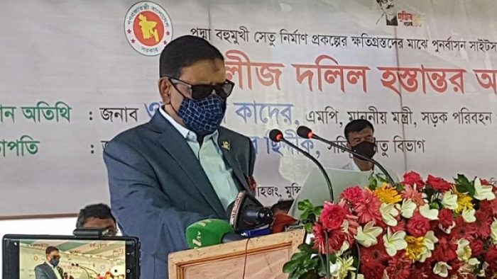 আজ রোববার (০৩ অক্টোবর) দুপুরে পদ্মা বহুমুখী সেতু নির্মাণ প্রকল্পের ক্ষতিগ্রস্তদের মাঝে পুনর্বাসন সাইটসমূহে বরাদ্দকৃত প্লটের লিজ দলিল হস্তান্তর অনুষ্ঠানে তিনি এ কথা বলেন।