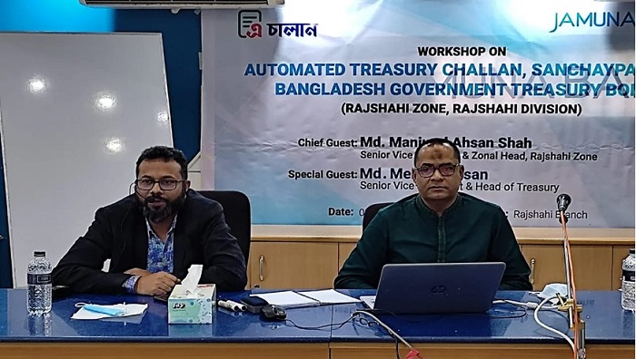 যমুনা ব্যাংক রাজশাহী অঞ্চলের আয়োজনে ‘অটোমেটেড চালান সিস্টেম, সঞ্চয়পত্র এবং বাংলাদেশ গভর্নমেন্ট ট্রেজারি বন্ডস ও বিলস’ শীর্ষক দিনব্যাপী প্রশিক্ষণ কর্মসূচি অনুষ্ঠিত হয়েছে। সম্প্রতি এটি অনুষ্ঠিত হয়।