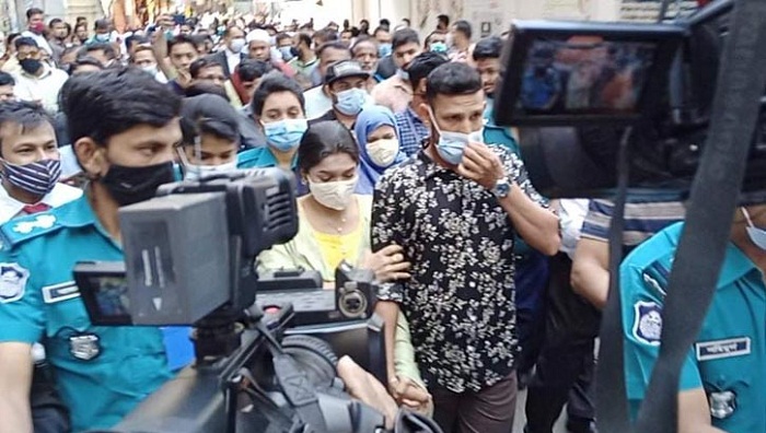 এর আগে সকাল সোয়া ১০টার কিছু পরে তারা আদালতে হাজির হন। ঢাকার মেট্রোপলিটন ম্যাজিস্ট্রেট মোহাম্মদ জসীমের আদালতে তাদের হাজির হওয়ার নির্দেশ ছিল। সেই নির্দেশে তারা আদালতে হাজির হন। মামলার বাদী তাম্মির স্বামী রাকিব হাসান এবং তার আইনজীবী ইসরাত হাসানও আদালতে উপস্থিত হয়েছেন।