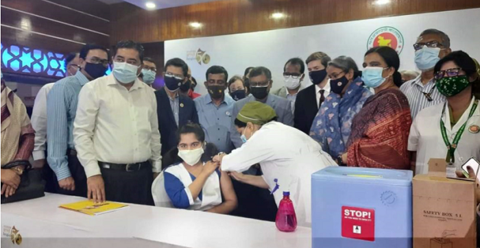 প্রাণঘাতী করোনাভাইরাস সংক্রমণ প্রতিরোধে ১২ থেকে ১৭ বছর বয়সী স্কুলগামী শিশুদের টিকা কার্যক্রম শুরু হয়েছে। সোমবার (১ নভেম্বর) সকালে রাজধানীর মতিঝিল আইডিয়াল স্কুল এন্ড কলেজে এই কার্যক্রমের উদ্বোধন করেন স্বাস্থ্যমন্ত্রী জাহিদ মালেক ও শিক্ষামন্ত্রী ডা. দিপু মনি।