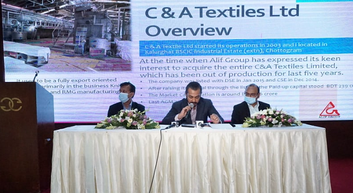 আজিমুল ইসলাম বলেন, সিঅ্যান্ডএ টেক্সটাইল গত ৫ বছর ধরে বন্ধ রয়েছে। সুদসহ ব্যাংকের দেনা রয়েছে ২৫০ কোটি টাকা। আর সুদ ছাড়া ২২ কোটি ৫০ হাজার টাকা দেনা রয়েছে। কোম্পানিটির কিছু অব্যবহারযোগ্য যন্ত্রপাতি রয়েছে এবং কিছু যন্ত্রপাতির কোন খোঁজ নেই, আবার কিছু যন্ত্রপাতি এখনও ব্যবহার উপযোগী করা হয়নি। এছাড়াও কোম্পানির কারখানার গ্যাস লাইনের সংযোগ বিচ্ছিন্ন, বন্ড লাইসেন্স স্থগিত, সম্পদ বণ্টনে অসামঞ্জস্যতা এবং বর্তমান উদ্যোক্তা পরিচালকদের হাতে মাত্র ৭ শতাংশ শেয়ার রয়েছে।