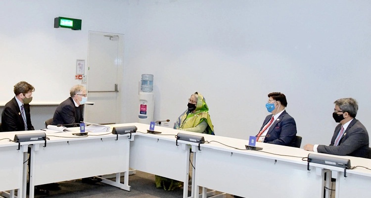 সোমবার (১ নভেম্বর) স্কটল্যান্ডের গ্লাসগোতে বিশ্ব জলবায়ু সম্মেলন (কপ-২৬) কেন্দ্রের মিটিং রুমে এ সাক্ষাৎ হয়। তাদের সাক্ষাতের ছবি প্রকাশ করেছে তথ্য অধিদপ্তর (পিআইডি)। ছবিতে পররাষ্ট্রমন্ত্রী এ কে আব্দুল মোমেনকে প্রধানমন্ত্রীর সঙ্গে দেখা যায়।