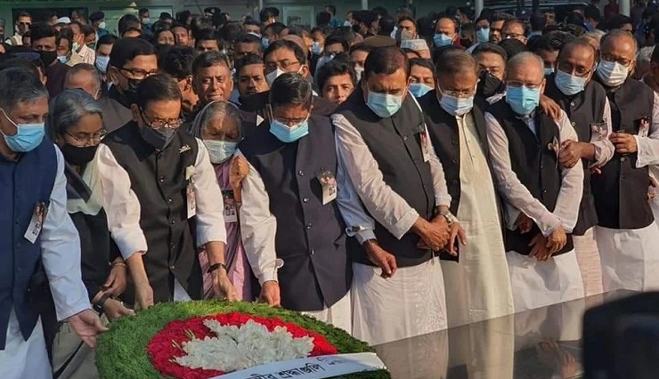 শ্রদ্ধা নিবেদনের পর আওয়ামী লীগের সাধারণ সম্পাদক এবং সড়ক পরিবহন ও সেতুমন্ত্রী ওবায়দুল কাদের বলেন, বঙ্গবন্ধুর পর জাতীয় চার নেতাকে হত্যার পর দেশে সাম্প্রদায়িকতার বীজ ঢুকিয়ে দেওয়া হয়েছিল। উগ্র সাম্প্রদায়িকতার মূলোৎপাটন করাই এখনকার চ্যালেঞ্জ।