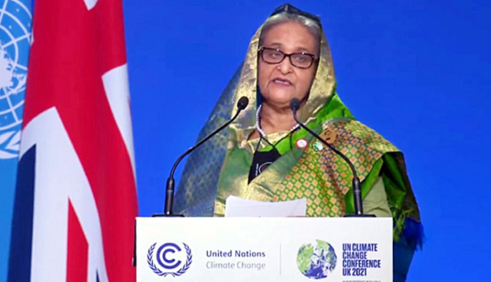 প্রধানমন্ত্রী বলেন, ‘বাংলাদেশ সরকার নিজস্ব অর্থায়নে বাংলাদেশ জলবায়ু পরিবর্তন ট্রাস্ট ফান্ড (বিসিসিটিএফ) প্রতিষ্ঠা করেছে। এই তহবিলের আওতায় বাংলাদেশ এ পর্যন্ত ৪৮০ মিলিয়ন ডলার বিনিয়োগসহ ৮০০টি প্রকল্প হাতে নিয়েছে যা প্রধানত অভিযোজন, প্রভাব প্রশমন এবং জলবায়ু পরিবর্তন সংক্রান্ত গবেষণার ওপর গুরুত্ব আরোপ করেছে।’