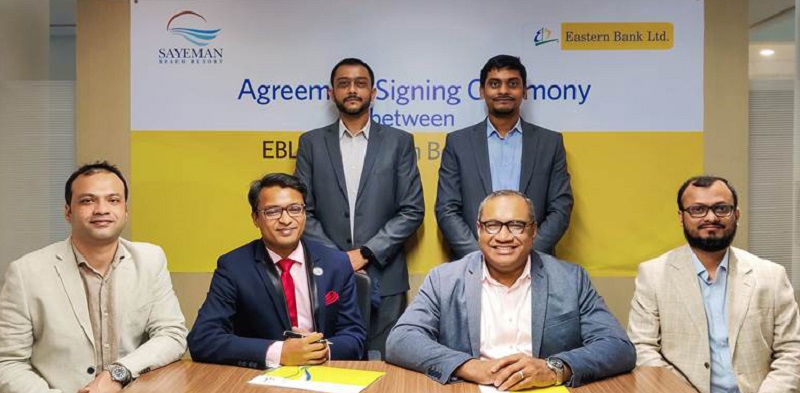 ইস্টার্ণ ব্যাংক লিমিটেড (ইবিএল) উপ-ব্যবস্থাপনা পরিচালক এবং রিটেইল ও এসএমই ব্যাংকিং প্রধান এম. খোরশেদ আনোয়ার এবং সায়মন বীচ রিসোর্টের ব্যবস্থাপক (বিক্রয় ও বিপনন) মো. আহসানুল হোসেন সম্প্রতি ঢাকায় এই সংক্রান্ত একটি চুক্তি স্বাক্ষর করেন। ইবিএল হেড অব লায়াবিলিটি এন্ড ওয়েলথ ম্যানেজমেন্ট সৈয়দ জুলকারনায়েনসহ অন্যান্যরা এসময় উপস্থিত ছিলেন।
