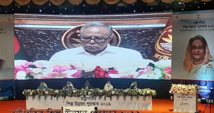 বৃহস্পতিবার (৪ নভেম্বর) রাজধানীর ওসমানী স্মৃতি মিলনায়তনে ‘রাষ্ট্রপতি শিল্প উন্নয়ন পুরস্কার ২০১৯’ প্রদান অনুষ্ঠানে প্রধান অতিথির বক্তব্যে রাষ্ট্রপতি এসব কথা বলেন। বঙ্গভবন থেকে ভার্চুয়ালি অনুষ্ঠানে যুক্ত হন তিনি।