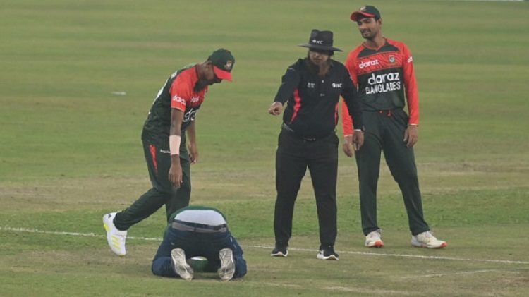 এরপর হঠাৎই মিরপুরে শোরগোল। মাঠের খেলা ছাপিয়ে সবার চোখ তখন মাঠের উত্তর গ্যালারীতে। হাজারখানেক দর্শকের মাঝ থেকে হুট করেই রেলিং পেরিয়ে মাঠে প্রবেশের চেষ্টা করেন একজন। সেটিতে অবশ্য সফলও হয়েছেন তিনি।