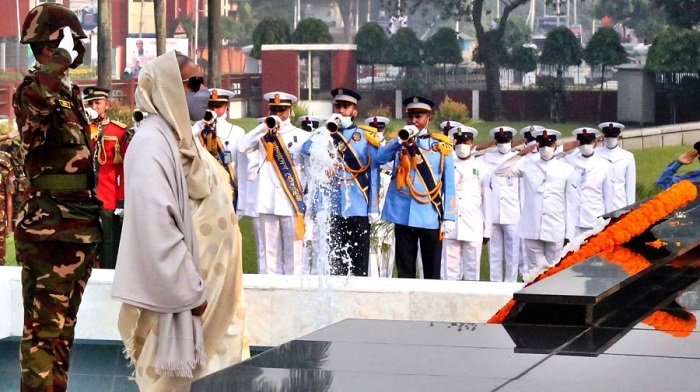 শেখ হাসিনা বলেন, মুক্তিযুদ্ধটা ছিল জনযুদ্ধ। এতে দেশের প্রতিটি মানুষের অবদান রয়েছে। যেহেতু গেরিলা যুদ্ধ হয়েছিলো মা-বোনেরাও প্রশিক্ষণ নিয়ে মুক্তিযুদ্ধে অংশগ্রহণ করেছেন। মুক্তিযোদ্ধারা যখন বিভিন্ন অপারেশনে আসতেন, তাদের আশ্রয় দেওয়া, অস্ত্র রাখাসহ সবরকমের সহযোগিতা তারা করেছে দেশের অভ্যন্তরে। একাত্তরের ২১ নভেম্বর সশস্ত্র বাহিনী ও আমাদের মুক্তিযোদ্ধারা সম্মিলিত আক্রমণের পরিকল্পনা নেয়। ৩ ডিসেম্বর যুক্ত হয় ভারতীয় মিত্রবাহিনী। মুক্তিযুদ্ধের সময় ভারতের সহযোগিতার জন্য ধন্যবাদ জানান প্রধানমন্ত্রী।