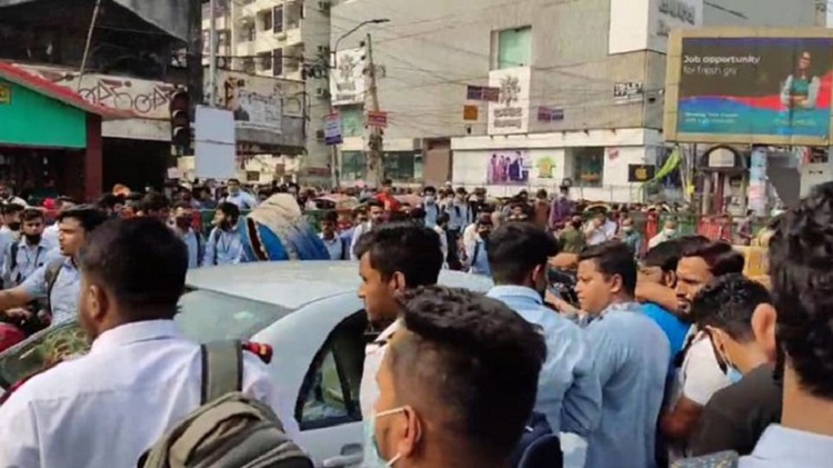 অর্ধেক ভাড়ার প্রজ্ঞাপন এবং ছাত্রী ও নারীদের জন্য অবাধ ও নিরাপদ যাত্রা নিশ্চিত করার দাবিতে বেলা ১১টার দিকে সাধারণ শিক্ষার্থীদের ব্যানারে এ অবস্থান কর্মসূচি পালন করা হয়।
