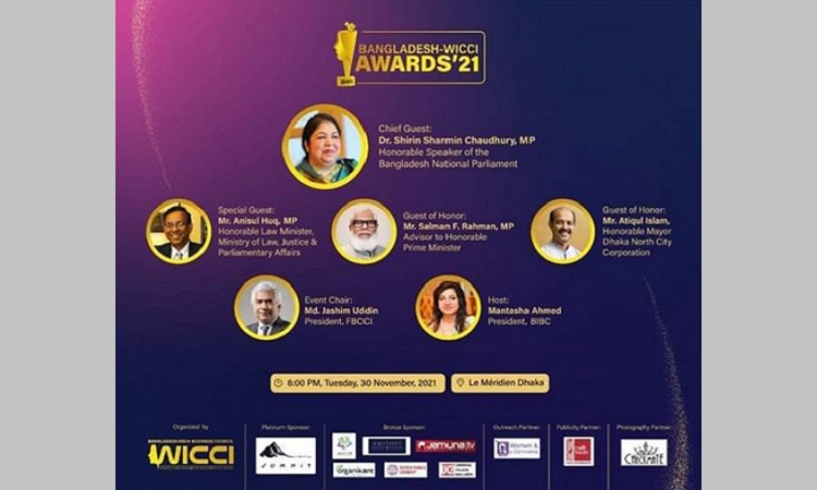 আয়োজকরা জানান, মঙ্গলবার (৩০ নভেম্বর) সন্ধ্যা ৬টায় ঢাকার লা মেরিডিয়ান হোটেলে প্রথমবারের মতো বাংলাদেশ ডব্লিউআইসিসিআই অ্যাওয়ার্ড-২০২১ অনুষ্ঠিত হবে। অনুষ্ঠানে প্রধান অতিথি হিসেবে উপস্থিত থাকবেন জাতীয় সংসদের স্পিকার ড. শিরীন শারমিন চৌধুরী।