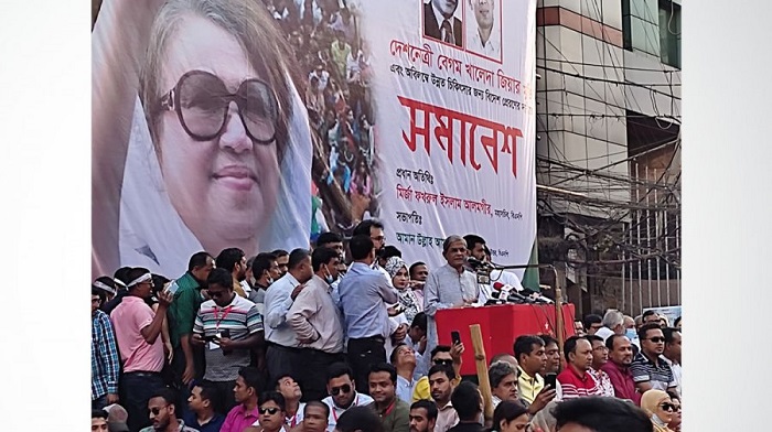 সমাবেশে প্রধান অতিথির বক্তব্যে মির্জা ফখরুল ইসলাম আলমগীর বলেন, ‘গতকাল (সোমবার) রাত ১২টার দিকে হঠাৎ ডা. জাহিদ হোসেন আমাকে ফোন করে বলেন, দ্রুত হাসপাতালে আসেন। আমি সেখানে গিয়ে দেখি অন্তত ১০ জন চিকিৎসক বসে আছেন। ঘরে ঢুকে আমি জানতে চাই, কী হয়েছে। তাদের অন্তত চিন্তিত দেখাচ্ছিল। তারা জানালেন, যেটা ভয় পাচ্ছিলাম, সেটাই হয়েছে। আবারও আজ (সোমবার) সন্ধ্যায় তার রক্তক্ষরণ হয়েছে।’