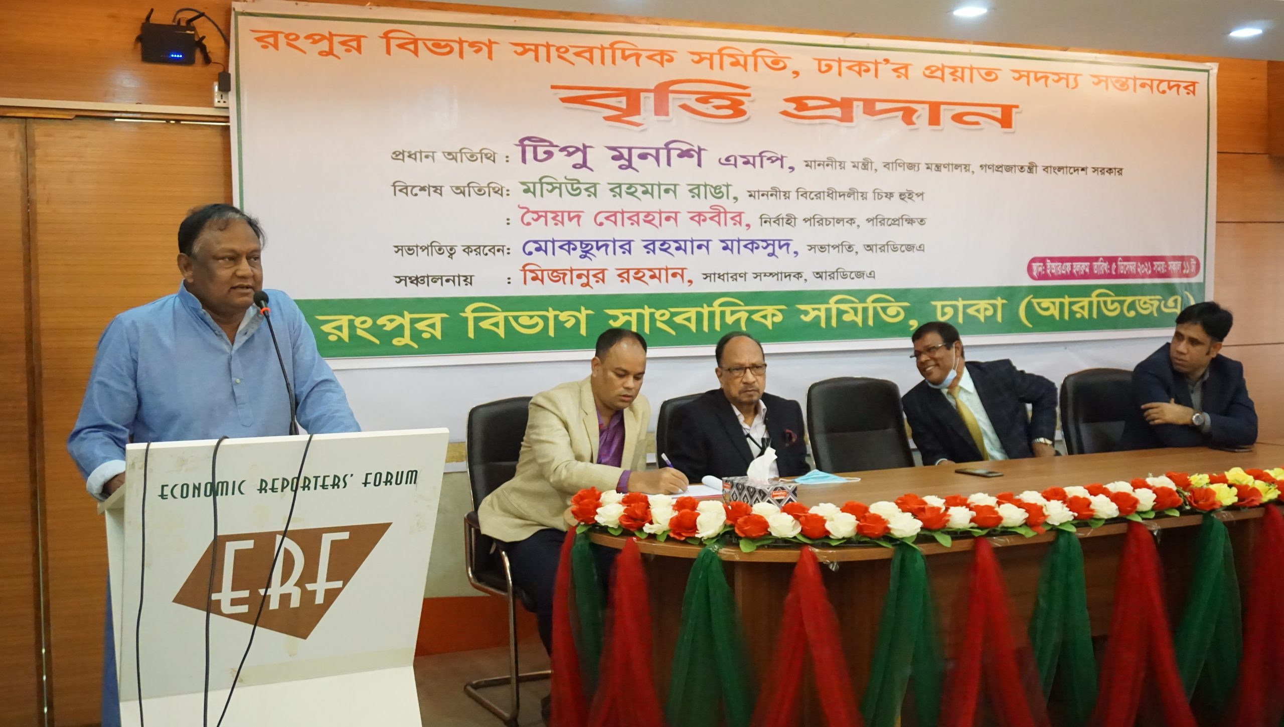 রংপুর বিভাগ সাংবাদিক সমিতি, ঢাকার (আরডিজেএ) আয়োজনে সংগঠনের প্রয়াত সাংবাদিক সদস্যের সন্তানদের বৃত্তি প্রদান অনুষ্ঠানে তিনি এসব কথা বলেন। রোববার (৫ ডিসেম্বর) রাজধানীর পল্টন টাওয়ারে অর্থনীতিক রিপোর্টার্স ফোরামে (ইআরএফ) অনুষ্ঠিত সভায় সভাপতিত্ব করেন আরডিজেএ’র সভাপতি মোকছুদার রহমান মাকসুদ।
