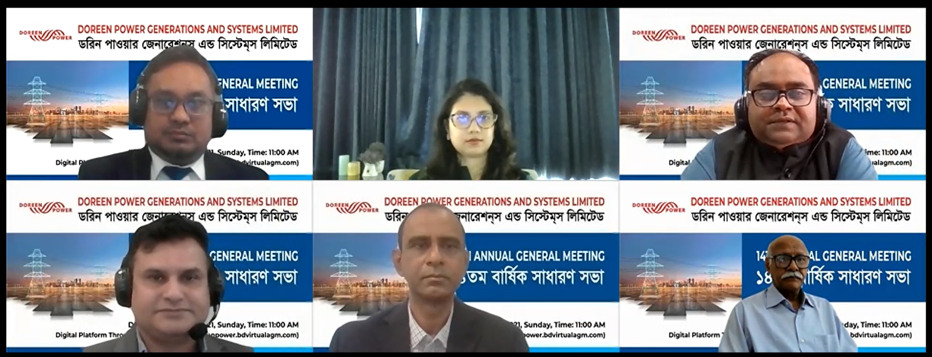 ডরিন পাওয়ার জেনারেশনস এন্ড সিষ্টেমস লিমিটেড (ডিপিজিএসএল) এর ১৪তম বার্ষিক সাধারণ সভা (এজিএম) আজ রোববার সকাল ১১ টায় ডিজিটাল প্লাটফর্মের মাধ্যমে অনুষ্ঠিত হয় । উপস্থিত শেয়ার হোল্ডারগণ ২০২০-২০২১ হিসাব বছরের জন্য সুপারিশকৃত ২৫ শতাংশ লভ্যাংশ সহ অন্যান্য আলোচ্য সূচি সমূহ অনুমোদন করেন।