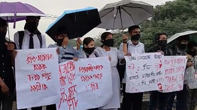 নিরাপদ সড়কের দাবিতে রাজধানীর রামপুরা ব্রিজ এলাকায় কালো ব্যাজ ধারণ ও মুখে কালো কাপড় বেঁধে মানববন্ধন করছে শিক্ষার্থীরা। সোমবার (৬ ডিসেম্বর) দুপুরের দিকে বৃষ্টি উপেক্ষা করে তারা কালো কাপড় পরে রাস্তায় নামে।
