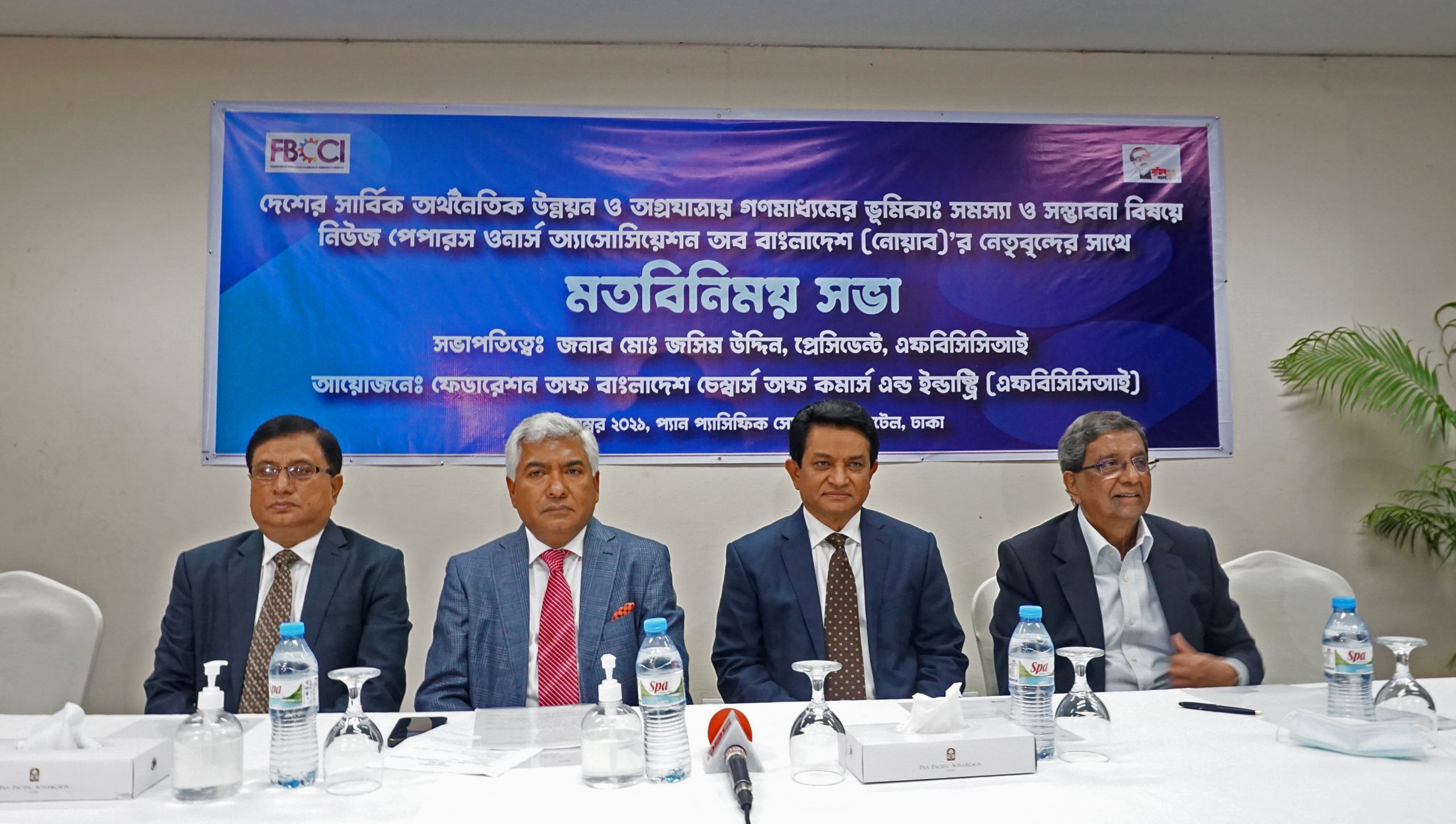 মতবিনিময় সভায় সভাপতিত্ব করেন এফবিসিসিআইয়ের সভাপতি মো. জসিম উদ্দিন। এসময় আরও উপস্থিত ছিলেন- ডেইলি স্টারের সম্পাদক মাহফুজ আনাম, প্রথম আলোর সম্পাদক মতিউর রহমান, বণিক বার্তার সম্পাদক দেওয়ান হানিফ মাহমুদ, দ্য ফাইন্যান্সিয়াল হেরাল্ডের সম্পাদক রিয়াজ উদ্দিন আহমেদসহ এফবিসিসিআইয়ের কর্মকর্তারা।