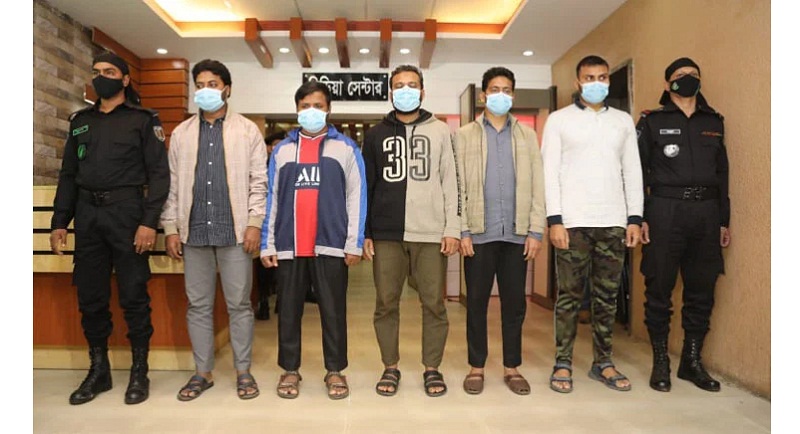 গ্রেফতারকৃতরা হলেন আব্দুল্লাহ আল মাহমুদ (২৯), ওয়ায়েজ কুরুনী (২৭), তাওহীদুল ইসলাম (২৬), গাজী সাখাওয়াত (২৯) ও হাবিবুর রহমান (৩০)। তাদের গ্রেফতারের সময় ল্যাপটপ, পোর্টেবল হার্ডডিস্ক ও বিভিন্ন দেশবিরোধী, নাশকতা ও উসকানিমূলক লিফলেটও জব্দ করা হয়েছে বলে জানিয়েছে র্যাব।