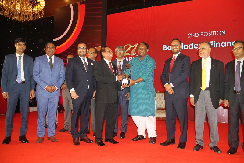 শনিবার সন্ধ্যায় রাজধানীর এক হোটেলে আয়োজিত অনুষ্ঠানে ১৫টি ক্যাটাগরিতে মোট ৩১টি প্রতিষ্ঠান ও সংস্থাকে এ পুরস্কার দেয়া হয়। ‘আর্থিক সেবা খাতে’ বাংলাদেশ ফাইন্যান্স দ্বিতীয় স্থান অর্জন করেছে; এ খাতে প্রথম হয়েছে আইডিএলসি ফাইন্যান্স লিমিটেড আর তৃতীয় পুরস্কার পেয়েছে ডেল্টা ব্রাক হাউজিং। বাণিজ্যমন্ত্রী টিপু মুনশির হাত থেকে বাংলাদেশ ফাইন্যান্সের পক্ষে দ্বিতীয় সেরার পুরস্কার নেন প্রতিষ্ঠানটির পরিচালক ইকবাল ইউ আহমেদ এবং ব্যবস্থাপনা পরিচালক ও প্রধান নির্বাহী কর্মকর্তা মোঃ কায়সার হামিদ।