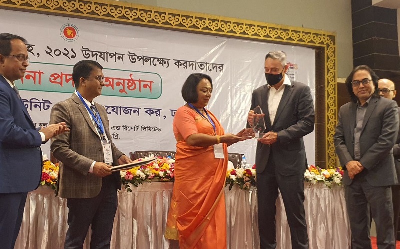 এলটিইউ-ভ্যাট’র কমিশনার ওয়াহিদা রহমান চৌধুরী অনুষ্ঠানে গ্রামীণফোনকে পুরস্কার প্রদান করেন।