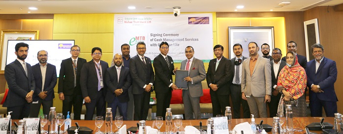 মিউচুয়াল ট্রাস্ট ব্যাংক লি. (এমটিবি) এবং গার্ডিয়ান লাইফ ইন্স্যুরেন্স কোম্পানী লি.-এর মধ্যে সম্প্রতি এমটিবি’র প্রধান কার্যালয়, এমটিবি সেন্টার, গুলশান ১, ঢাকা-এ ক্যাশ ম্যানেজমেন্ট সেবার জন্য চুক্তি স্বাক্ষরিত হয়।