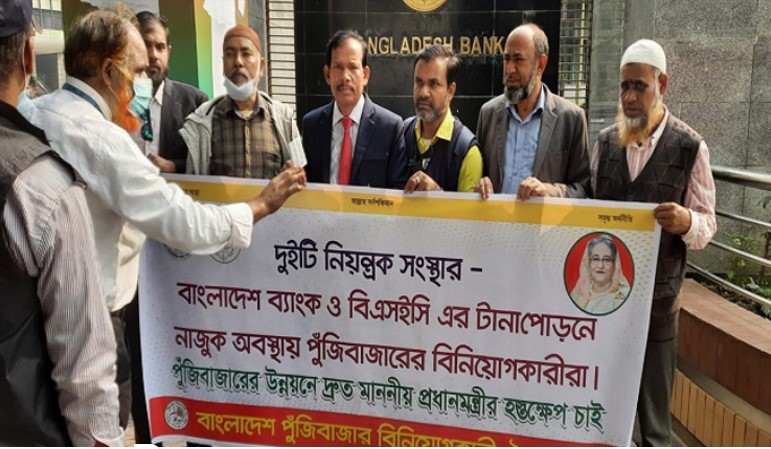 মঙ্গলবার (২৮ ডিসেম্বর) দুপুর ১টার দিকে রাজধানীর মতিঝিলে বাংলাদেশ ব্যাংকের সামনে বাংলাদেশ পুঁজিবাজার বিনিয়োগকারী ঐক্য পরিষদ আয়োজিত প্রতিবাদ কর্মসূচির মাধ্যমে এই দাবি জানানো হয়েছে।