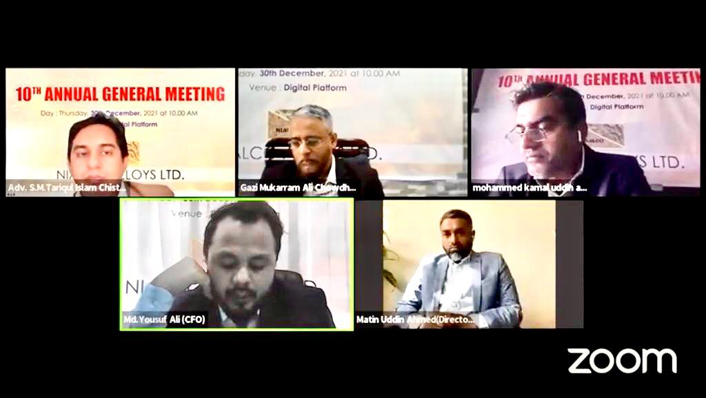 দেশের প্রথম তালিকাভুক্ত এসএমই কোম্পানি নিয়ালকো এলোয়েজ লিমিটেড-এর ১০তম বার্ষিক সাধারণ সভা গত বৃহস্পতিবার (৩০ ডিসেম্বর) ডিজিটাল প্ল্যাটফর্মে অনুষ্ঠিত হয়েছে।